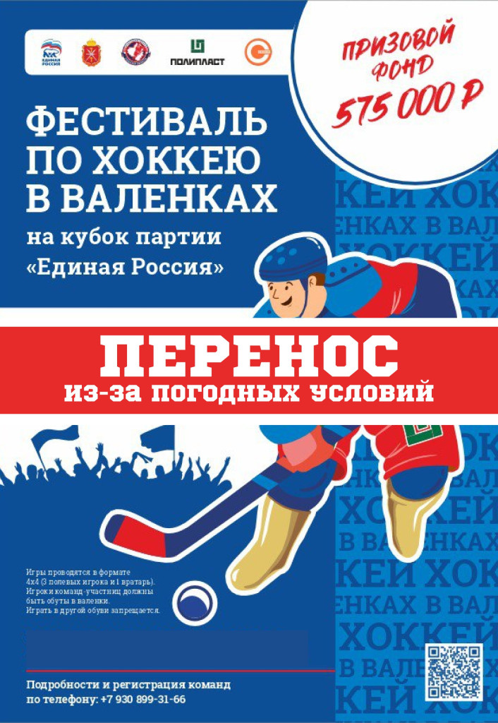 В Туле перенесли фестиваль по хоккею в валенках на кубок партии «Единая Россия» из -за теплой погоды. Об этом информирует федерация хоккея Тульской области.