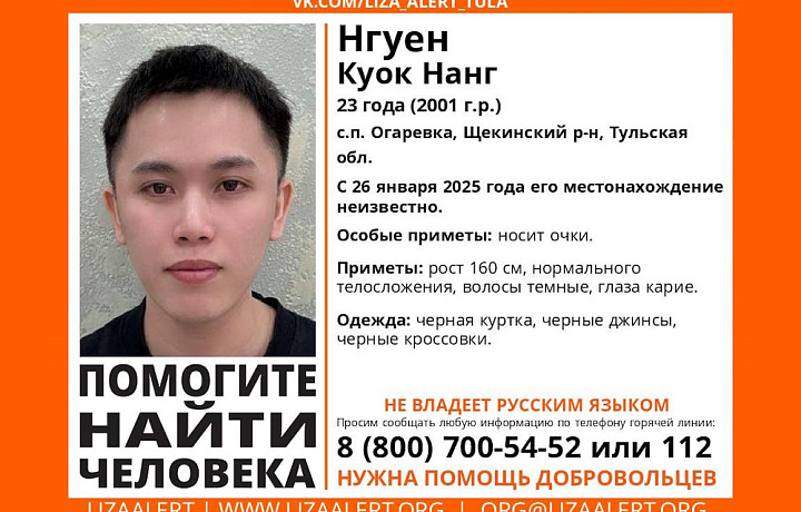 В сельском поселении Огаревка Щекинского района пропал 23-летний парень по имени Нгуен Куок Нанг, сообщает тульский поисково-спасательный отряд «Лиза Алерт».