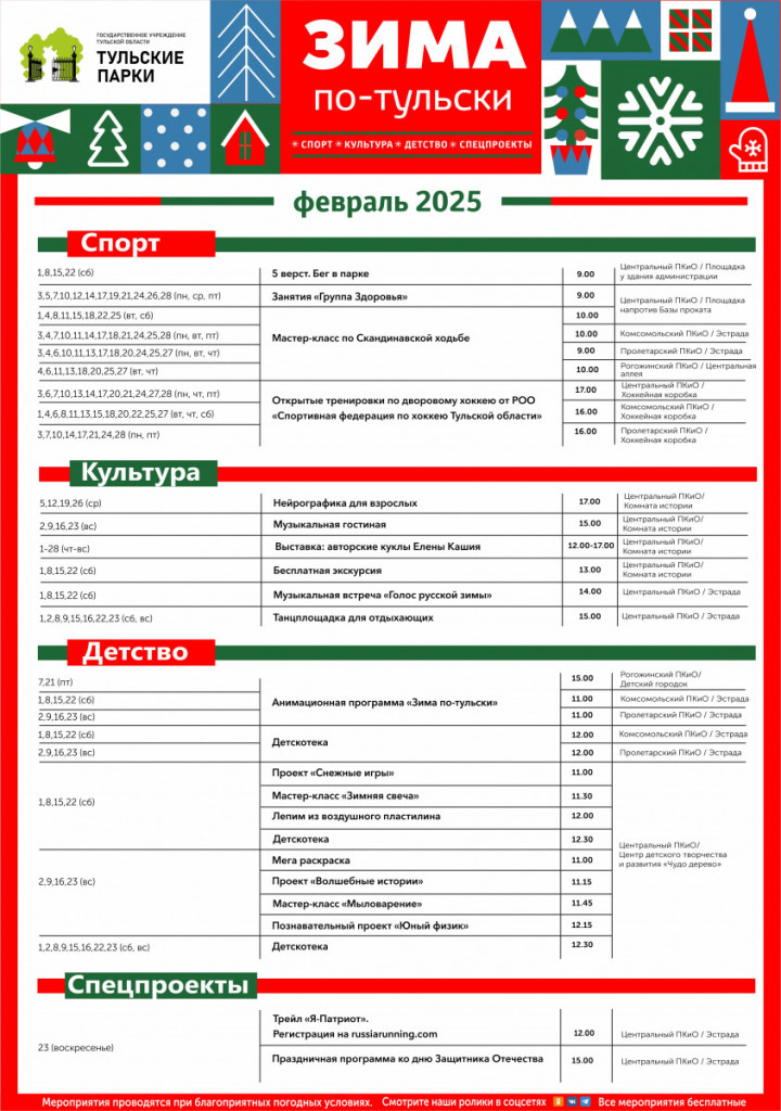 Спортивные и культурные мероприятия ждут в январе в тульских парках. Подробнее – в афише. 18+