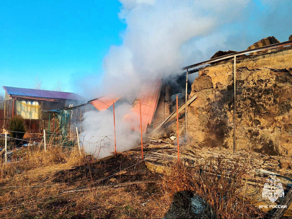 Площадь пожара составила 95 квадратных метров. Огонь тушили пять спасателей и два пожарных расчета. Причиной возгорания, по их словам, стал неисправный дымоход.