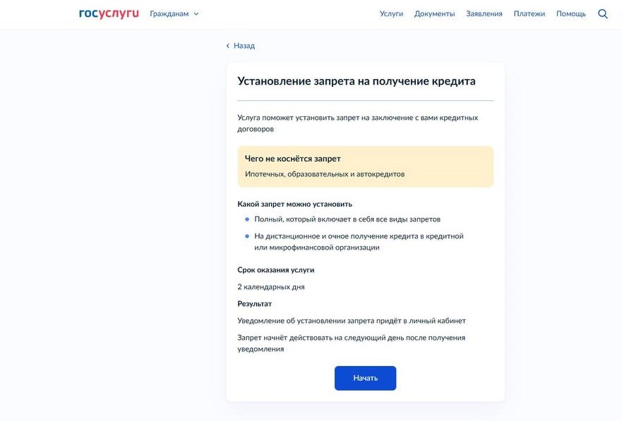 До 1 сентября оформить запрет можно исключительно через портал Госуслуг, а позже такая возможность станет доступна также в многофункциональных центрах (МФЦ).