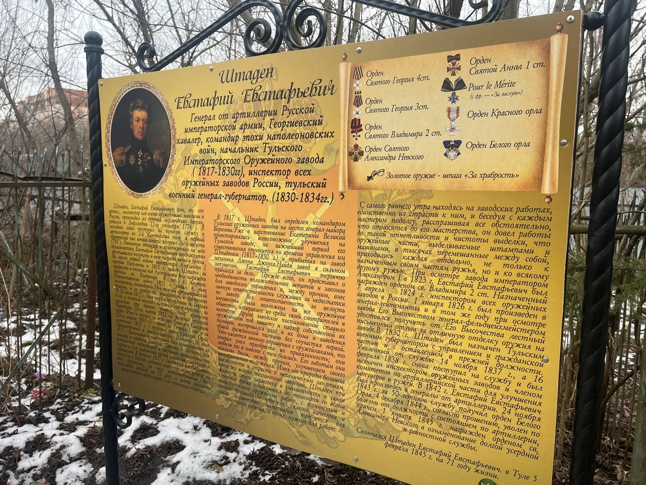 На Чулковском кладбище можно встретить надгробие русского генерала и военного губернатора Тулы Евстафия Евстафиевича Штадена.