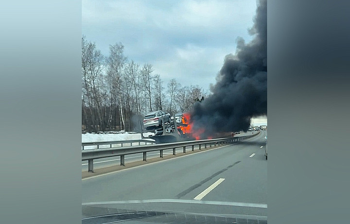 Уточняется, что сперва пожар произошел в одной из транспортируемых машин, после чего огонь перешел на соседние. Предварительно возгорание случилось из-за короткого замыкания, однако настоящая причина на данный момент неизвестна.