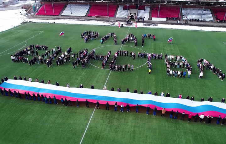 Жители Новомосковска создали большой российский флаг на стадионе