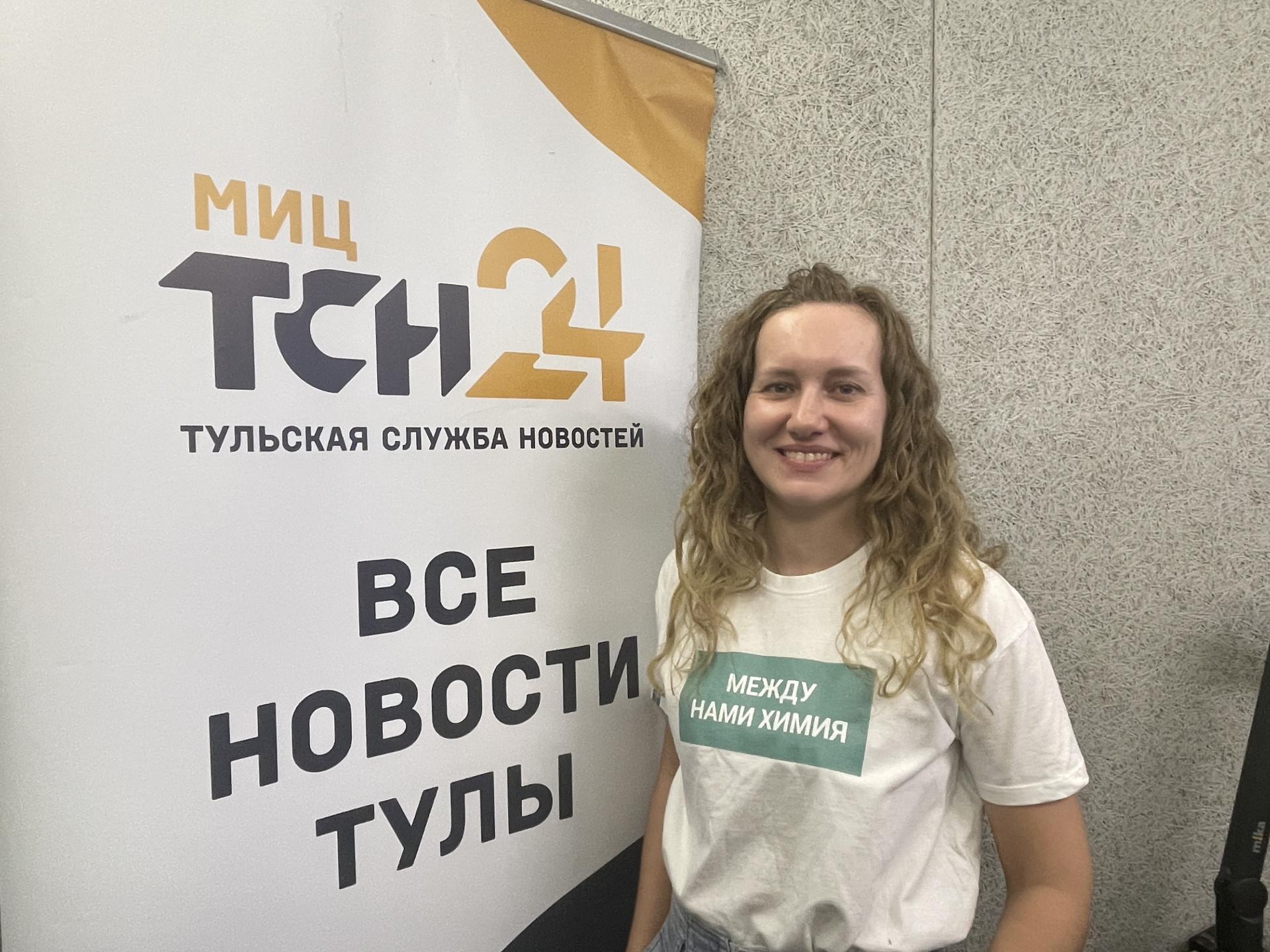 На футболке, в которой пришла Ольги Каманиной написано «Между нами химия», что сразу дало понять ее связь с этой наукой.