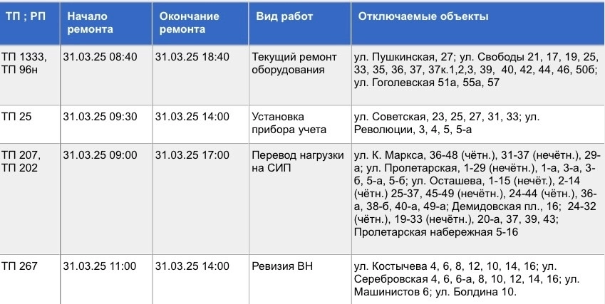 Стало известно, где в Туле не будет электричества 31 марта
