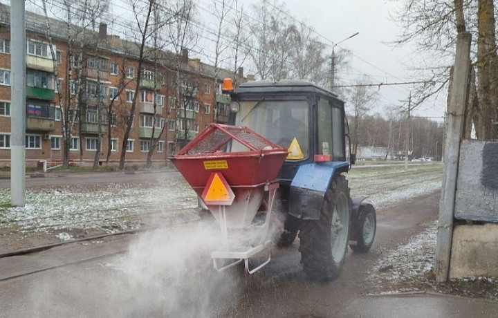 Коммунальные службы работают в круглосуточном режиме. За минувшие выходные дороги и тротуары областного центра, в связи с погодными условиями, начали обрабатывать противогололедными материалами. Израсходовано 226 тонн реагента и 342 тонны пескосоляной смеси.