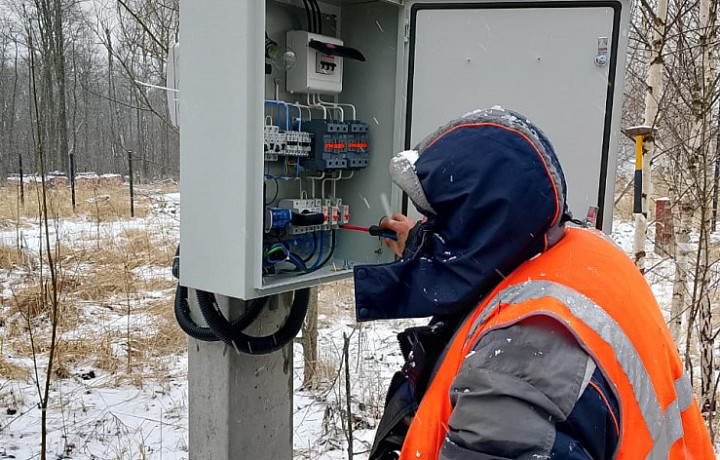 8 апреля электрики установили шкаф управления наружным освещением и подключили питание.