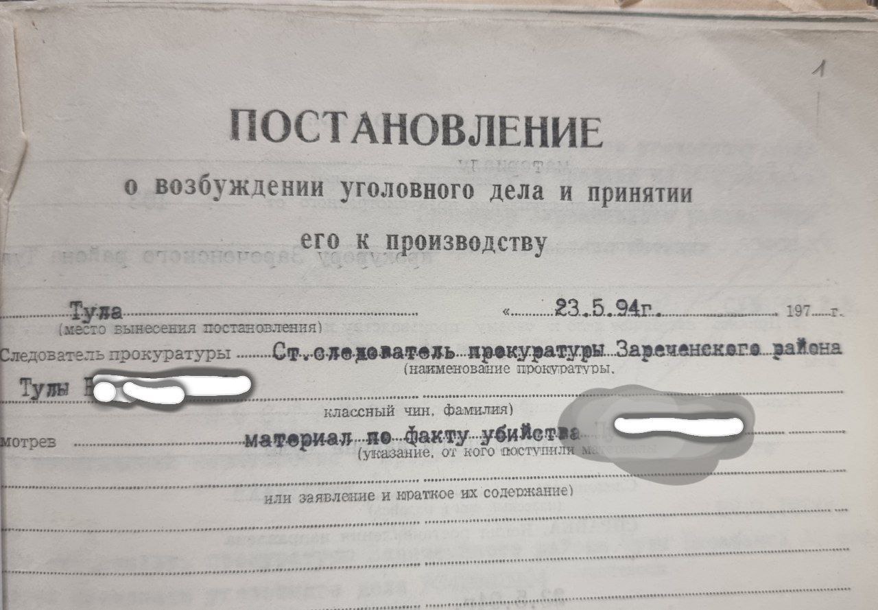 Прокуратура Тульской области подготовила обвинительное заключение для передачи в суд уголовного дела об убийстве, совершенном в 1994 году.