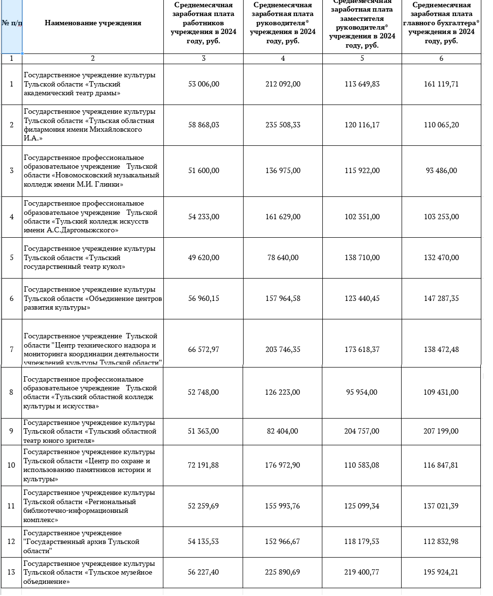 Стали известны зарплаты работников и руководителей тульских учреждений культуры