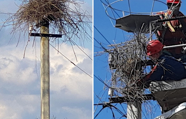 Птицы устроили гнёзда на электрических столбах, что создавало угрозу их жизни из-за опасного расположения.