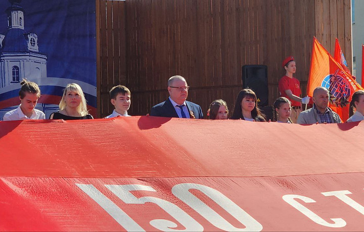 На площади участники развернули копию Знамени Победы площадью 200 квадратных метров.
