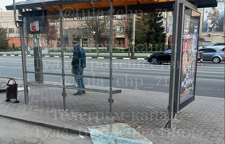 В Туле неизвестные разбили остановку на Красноармейском проспекте, 24. У павильона оказались выбиты все стекла.