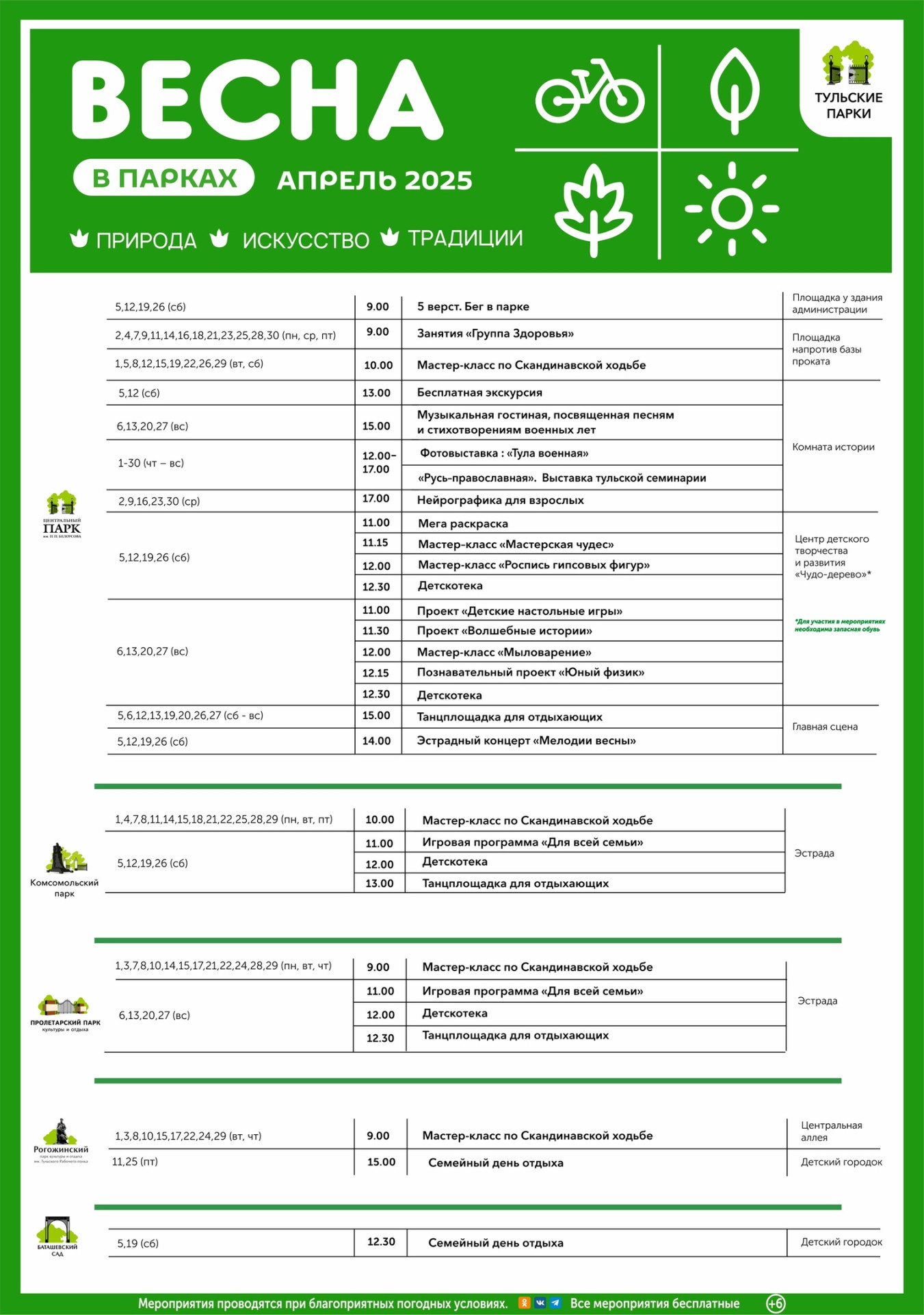 Спортивные и культурные мероприятия ждут в апреле в тульских парках. Подробнее – в афише. 18+