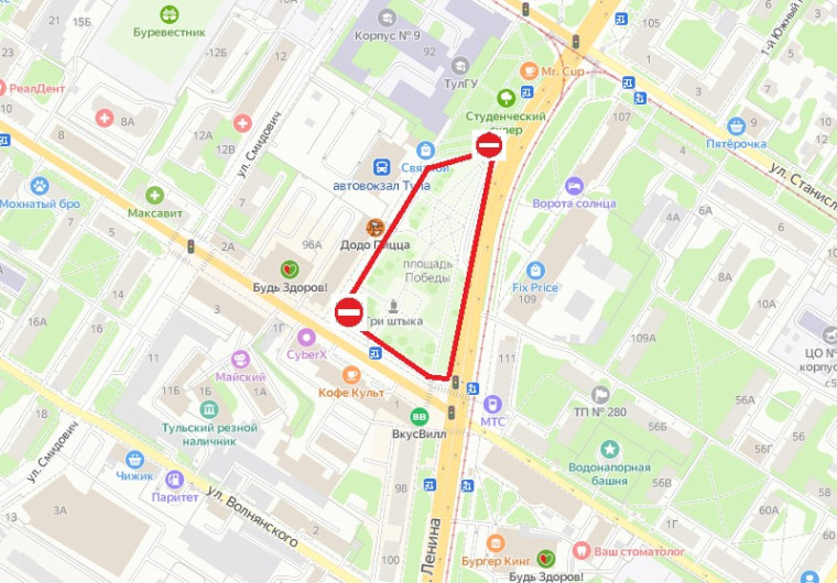 Также, 27 апреля на время проведения футбольного матча на Центральном стадионе в Туле перекроют улицы Жаворонкова и Агеева.