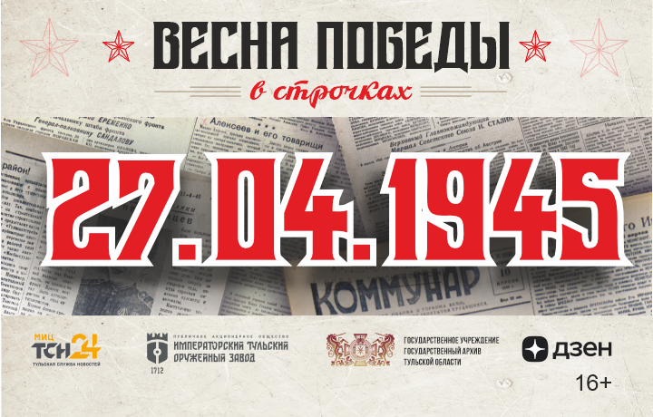 Путь от едва уловимой надежды до полной уверенности в победе – именно такое описание можно дать апрелю 1945 года. Тульская служба новостей совместно с «Дзен» и Государственным архивом Тульской области в партнерстве с ПАО «Императорский Тульский оружейный завод» продолжает проект «Весна Победы в строчках», приуроченный к 80-летию со дня Победы над фашистской Германией. Здесь мы рассказываем о том, что писали в региональных газетах за месяц до наступления мира – с 9 апреля по 9 мая. Среди главных инфоповодов, которые можно найти на пожелтевших от времени страницах – героизм Красной Армии, успехи посевной кампании, увеличение производства на предприятиях, культурное просвещение общества.