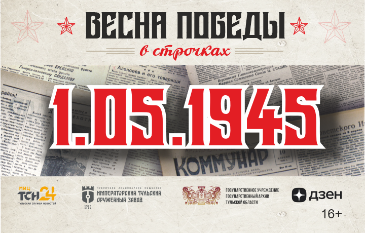 В начале месяца надежда, а в конце – полная уверенность в Победе. Именно такое описание можно дать апрелю 1945 года. Тульская служба новостей совместно с «Дзен» и Государственным архивом Тульской области в партнерстве с ПАО «Императорский Тульский оружейный завод» продолжает проект «Весна Победы в строчках», приуроченный к 80-летию со дня Победы над фашистской Германией. Здесь мы рассказываем о том, что писали в региональных газетах за месяц до наступления мира – с 9 апреля по 9 мая. Среди главных инфоповодов, которые можно найти на пожелтевших от времени страницах – героизм Красной Армии, успехи посевной кампании, увеличение производства на предприятиях, культурное просвещение общества и другие.