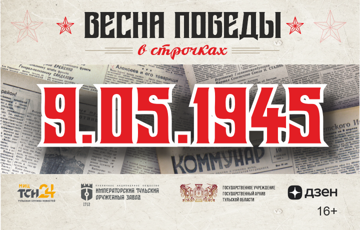 В начале апреля надежда, а в начале мая – полная уверенность в Победе. Именно такое описание можно дать этим месяцам 1945 года. Тульская служба новостей совместно с Дзен и Государственным архивом Тульской области в партнерстве с ПАО «Императорский Тульский оружейный завод» продолжает проект «Весна Победы в строчках», приуроченный к 80-летию со дня Победы над фашистской Германией. Здесь мы рассказываем о том, что писали в региональных газетах за месяц до наступления мира – с 9 апреля по 9 мая. Среди главных инфоповодов, которые можно найти на пожелтевших от времени страницах – героизм Красной Армии, успехи посевной кампании, увеличение производства на предприятиях, культурное просвещение общества.