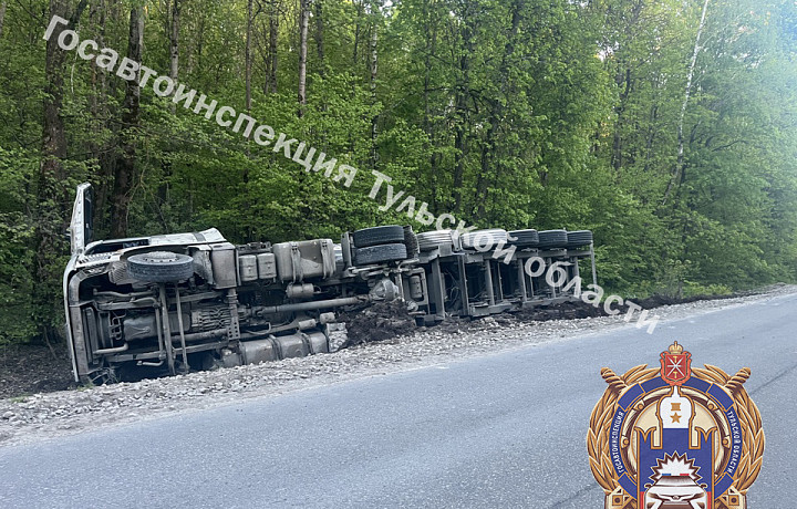 Грузовик вылетел с трассы и опрокинулся в кювет под Тулой – пострадал водитель
