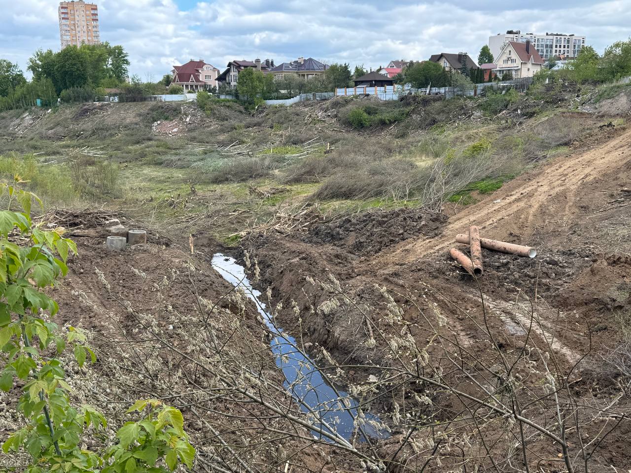 Местные также рассказали, что переживают о судьбе Серебровского ручья. Сейчас он похож на обычную лужицу посреди масштабных земляных работ.