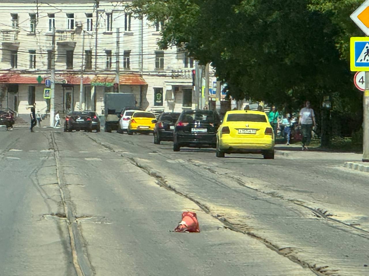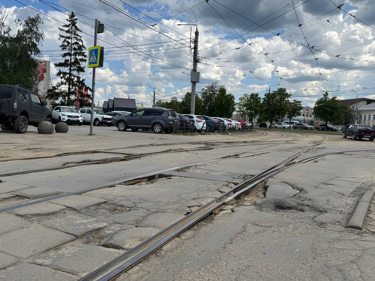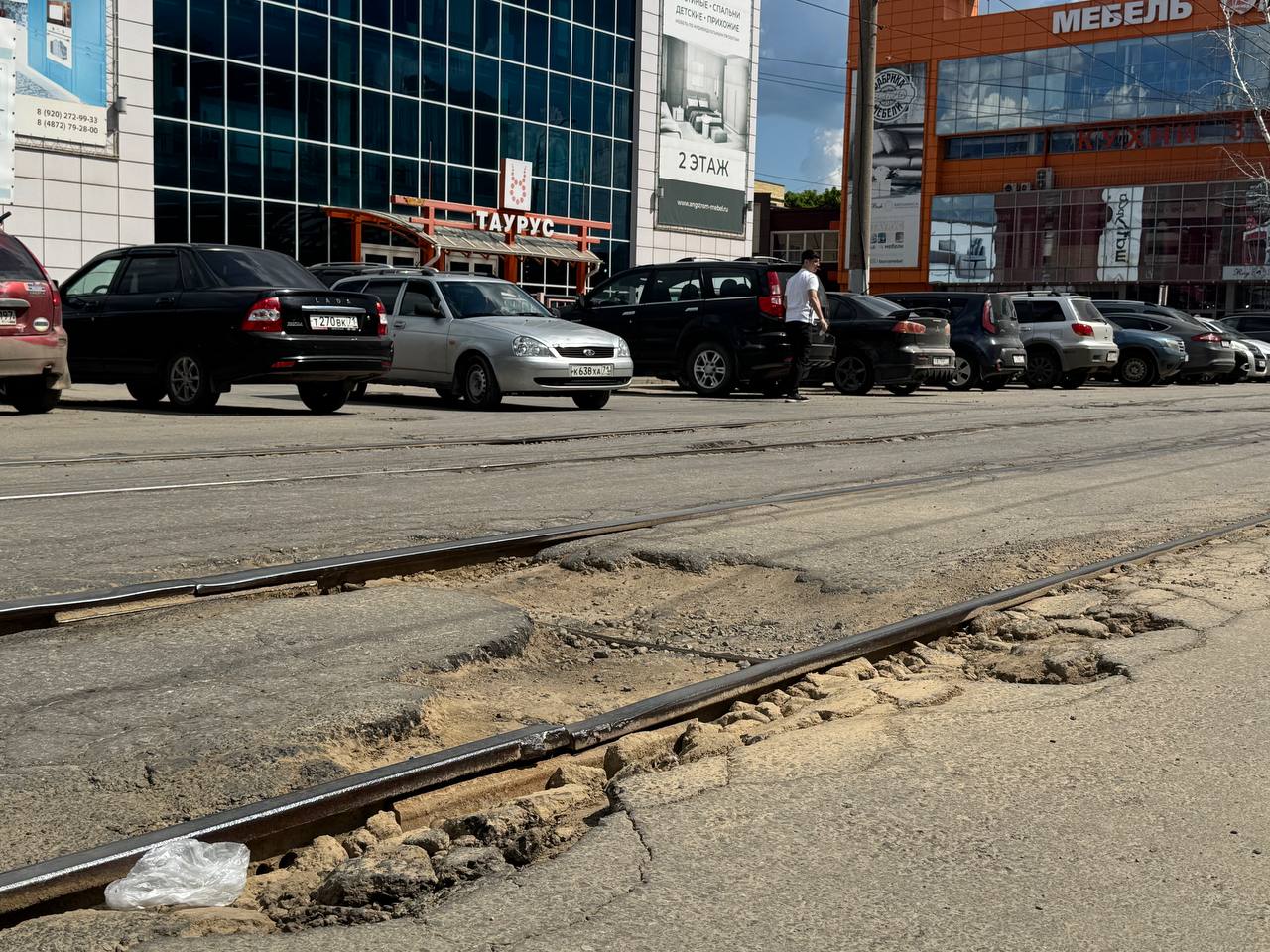«Видите, на сколько поднялся асфальт от уровня рельс? Ближе к участку, где начинается стадион «Арсенал» — это уже улица Тимирязева, совсем все печально», — пишет туляк.