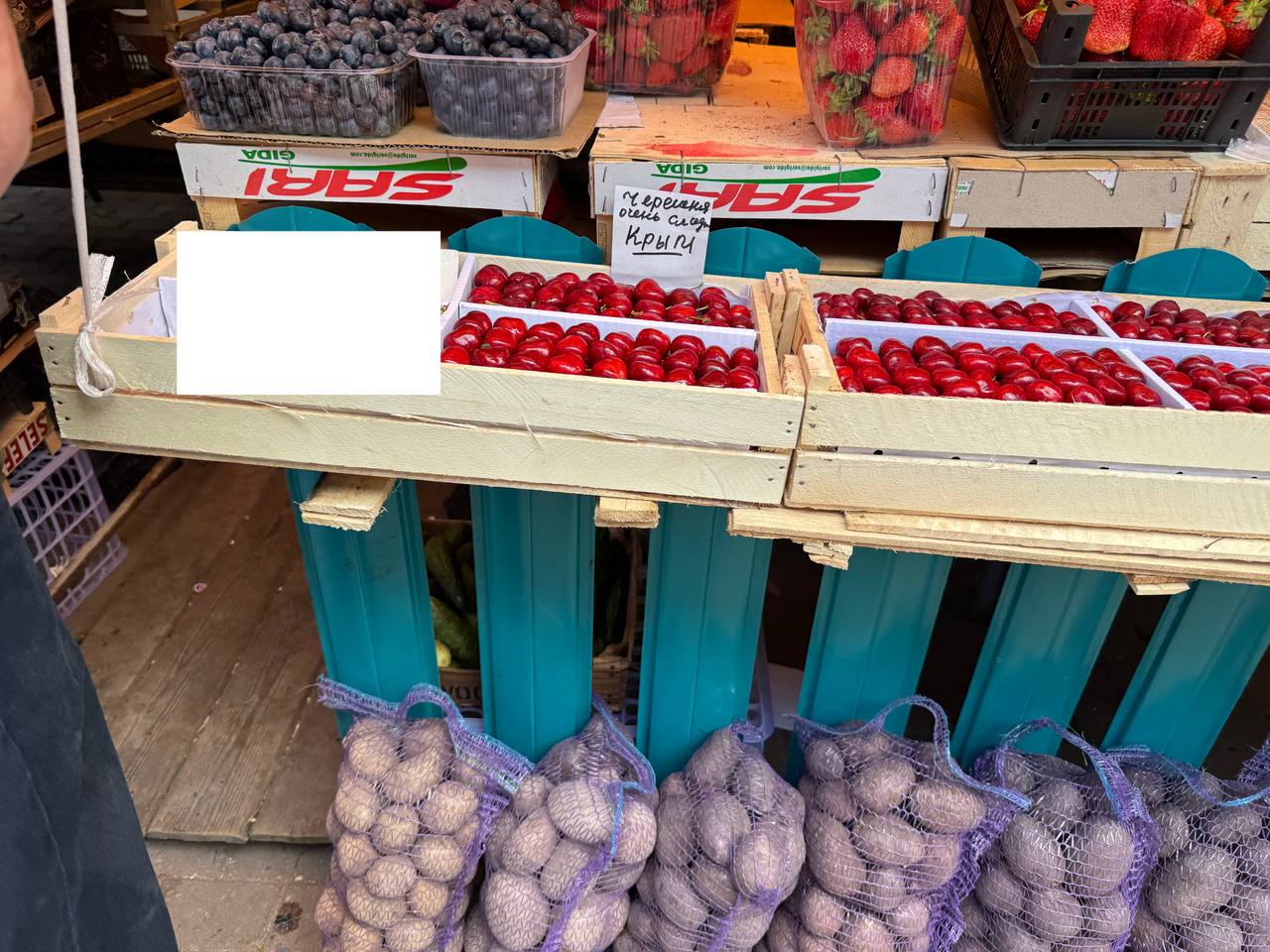 На этой торговой точке цены на ягоды следующие: клубника от 500 до 650 рублей, черешня — от 550 до 1000 рублей. Привозят из Краснодара, Узбекистана и Крыма. Также в сезоне голубика. Ее цена — 1500 рублей за килограмм — средняя по Туле.