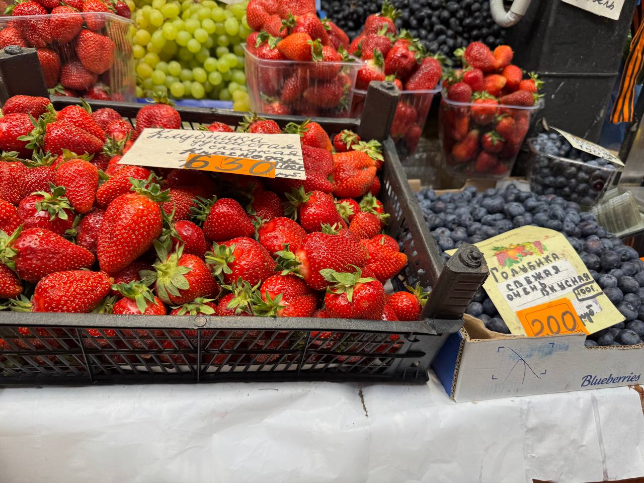 «А что сегодня дешево? Нормальная цена. Сегодня всё дорожает, и ягоды не исключение. Это мы ещё наценку делаем адекватную. У нас 550 рублей за килограмм. Еще несколько недель назад продавали за 450, но поставщик поднял цену, не мы», – объясняет цены продавец на Фрунзенском рынке.