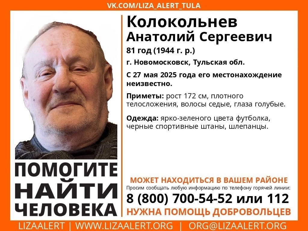 Пожалуйста, вглядитесь в фотографию этого человека. Возможно, именно вы поможете вернуться Анатолию Сергеевичу домой. Приметы и номера телефонов, по которым можно обращаться в случае появления какой-либо информации, вы можете увидеть на ориентировке.