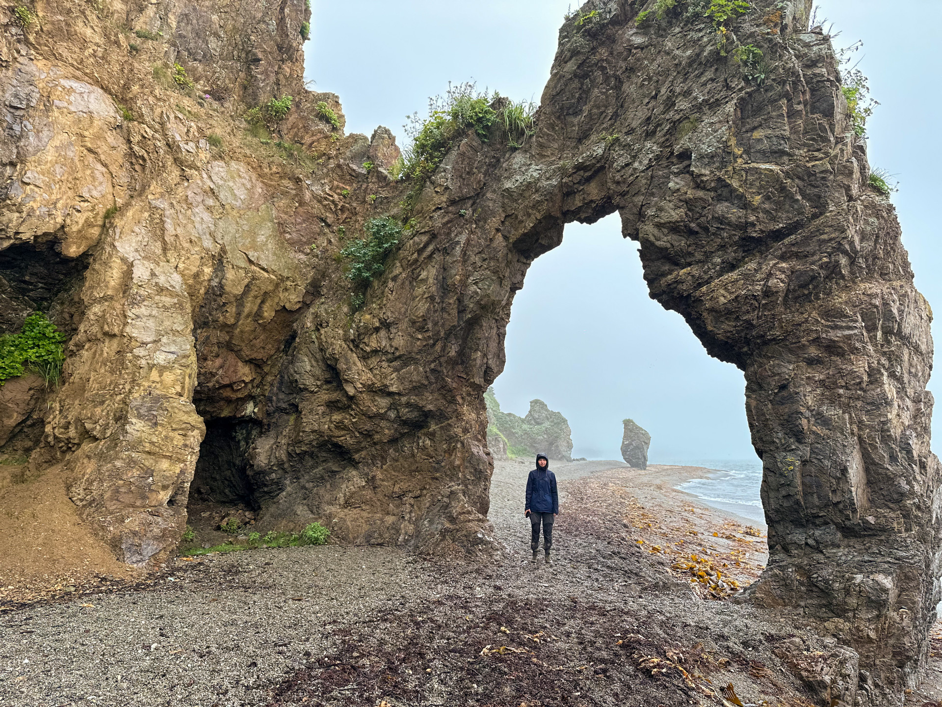 Мне вообще нравятся суровые северные моря и горы. Прям гор в Сахалине нет – это сопки, поросшие лесом – но тем не менее. Я всегда, в первую очередь, еду даже не за какими-то культурными достопримечательностями, а посмотреть природные места: леса, моря, бухты, реки и другие пейзажи. Поскольку это остров, там много воды. Он окружен Охотским морем и Татарским проливом. Если говорить о конкретных достопримечательностях, то это заброшенный японский маяк, который построен японцами еще до войны. Туда мы плавали на катере – очень грандиозное сооружение, прямо монументально смотрится. Из природных – мыс Великан, красивые и уютные бухты. Особенно приятно в бухтах заночевать – поставил палатку, сел на берегу и любуешься на океан, на лес, на отвесные скалы. Это прямо впечатляет.