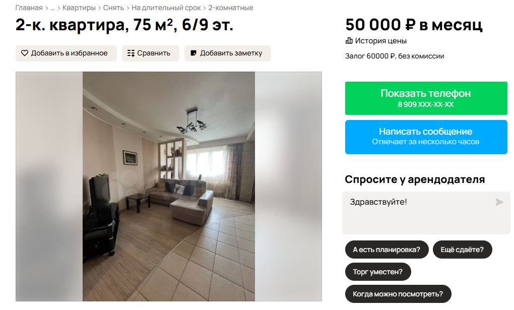 В некоторых домах цены на аренду достигают 50 тысяч рублей.
