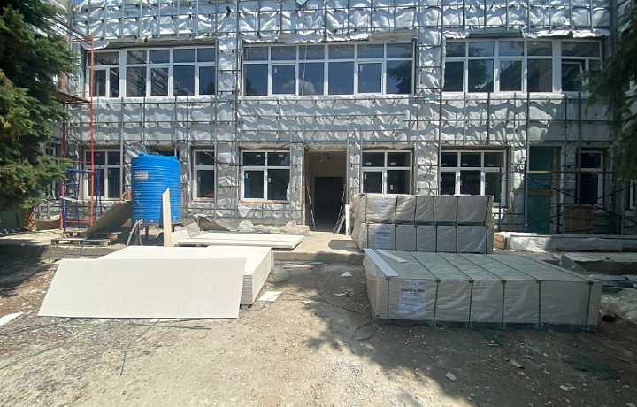 В настоящий момент рабочие закрыли тепловой контур здания. Сделаны теплые полы, смонтированы козырьки над входами и эвакуационные лестницы. Проложены наружные теплосети, а внутри здания завершена кирпичная кладка перегородок.