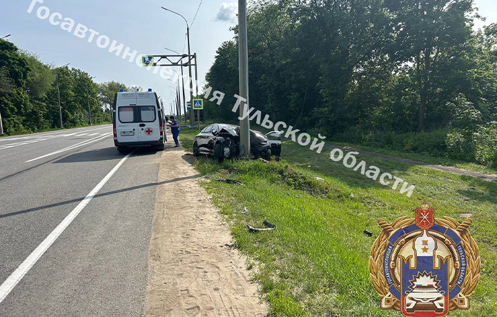 Водитель на «KIA K5» снёс опору ЛЭП в Тульской области, пострадали три человека