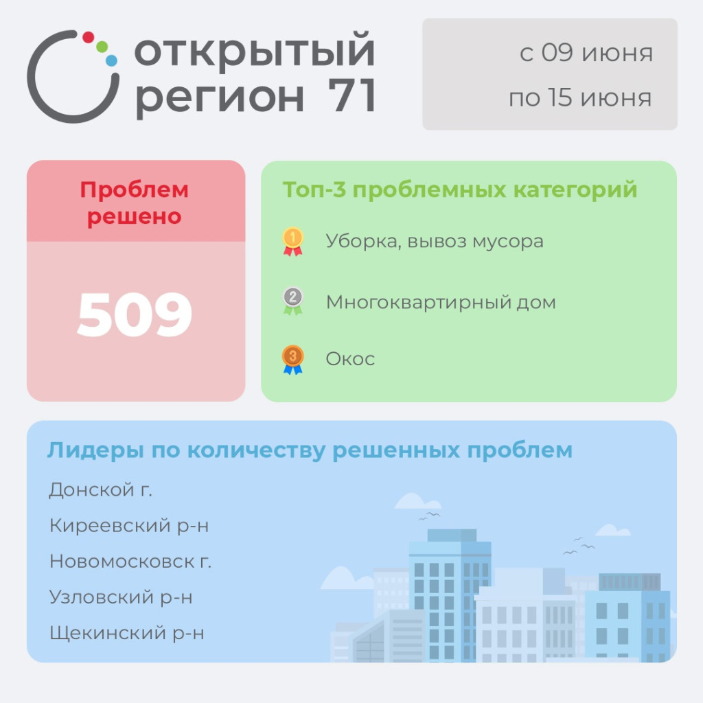 На прошлой неделе, с 9 по 15 июня, на портале «Открытый регион 71» обработали больше 500 обращений жителей Тульской области.