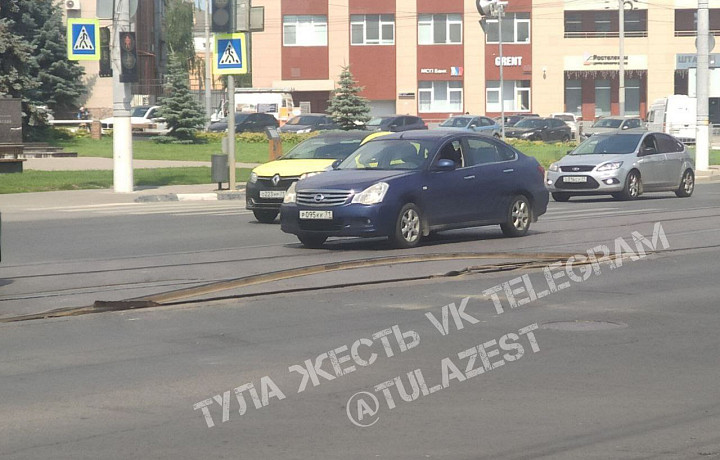 В Туле на улице Советской распёрло трамвайные рельсы. Фото изогнутого полотна опубликовали подписчики Telegram-канала «Тула Жесть».