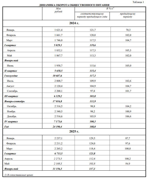 Оборот общественного питания за пять месяцев 2025 года составил 11,2 миллиарда рублей. Об этом сообщили в Туластате. Только в мае оборот ресторанов и кафе составил 2,2 миллиарда рублей, что выше показателя прошлого года почти на 4%.