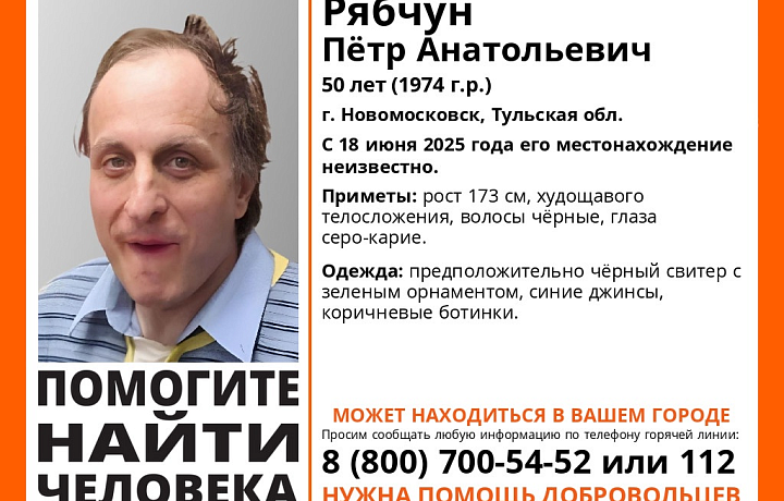 Жителей Тульской области просят сообщать любую информацию о местонахождении пропавшего новомосковца по телефону горячей линии отряда 8 (800) 700-54-52 или 112.