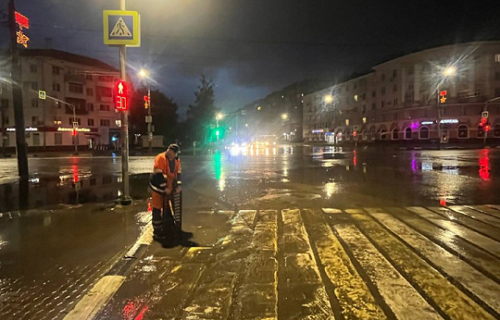 На улицах Тулы после сильного дождя устраняют локальные подтопления