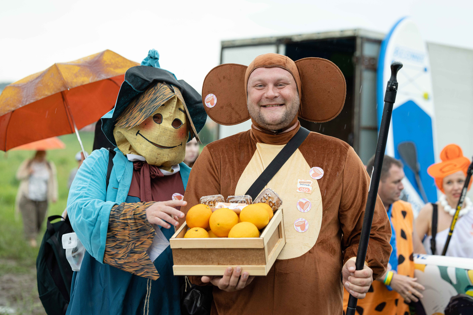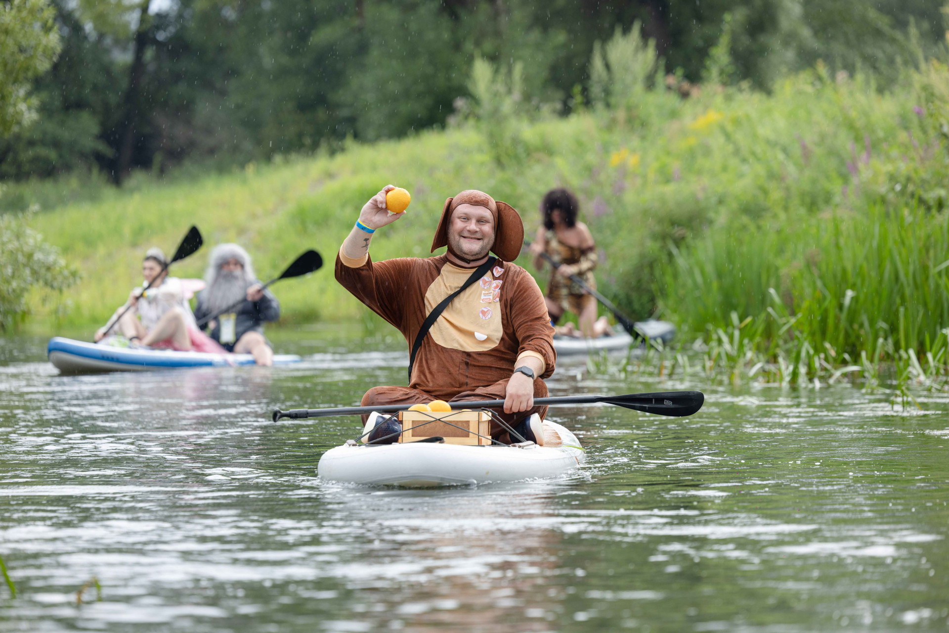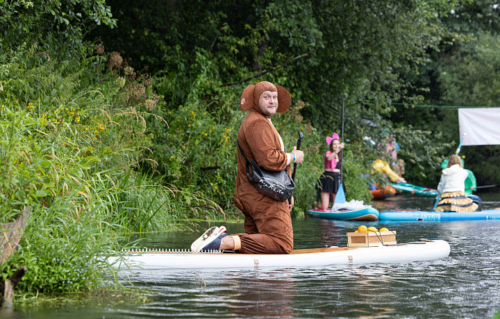На сап-фестивале в Тульской области по реке Вашане проплыл двухметровый чебурашка с апельсинами