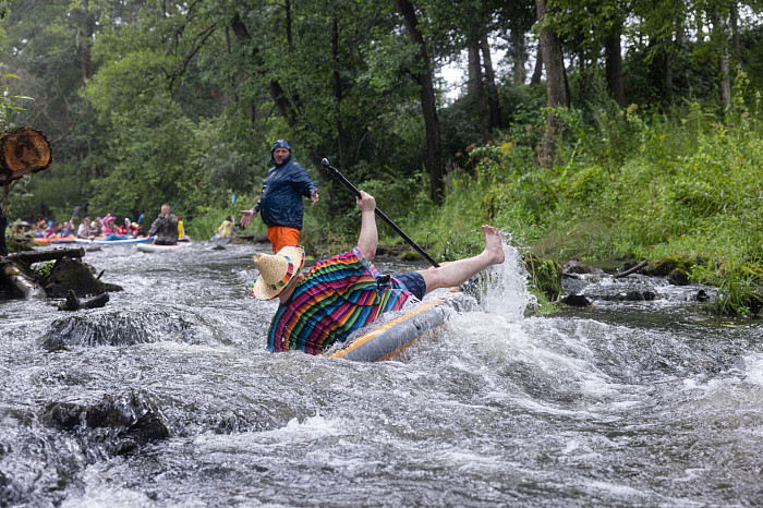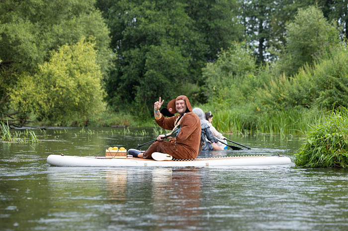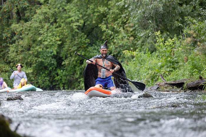 Пиком и апогеем фестиваля организаторы назвали костюмированный сплав. В нем приняли участие более 100 человек, которые нарядились в самые разные костюмы. Дистанцию преодолели Чебурашка, Страшила, Буратино, Человек-паук, Человек-доставка, Мона Лиза и многие другие.