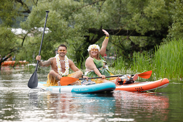 В карнавальном заплыве на Vashana Sup Camp приняли участие Страшила, Чебурашка и Мона Лиза