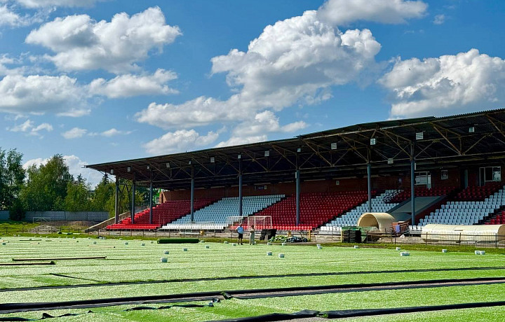 Работы проводятся по поручению губернатора региона Дмитрия Миляева в рамках программы «Наш район». Так, с поля уже убрали старое покрытие, заменили систему подогрева и приступили к укладке современной искусственной травы нового поколения.