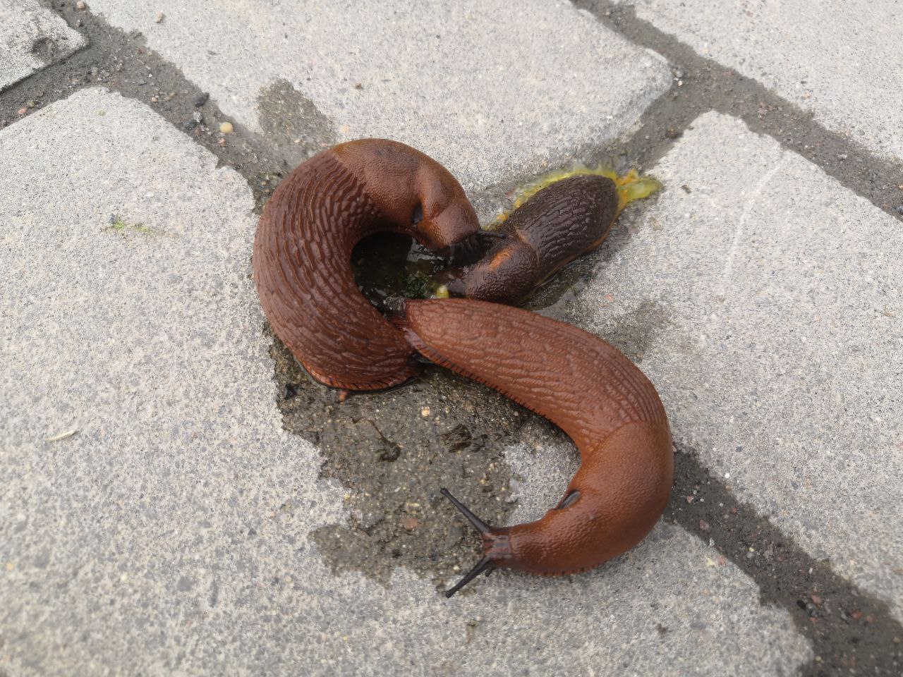 А вот снимок, сделанный читателем ТСН24. Испанский слизень пожирает мертвого сородича.