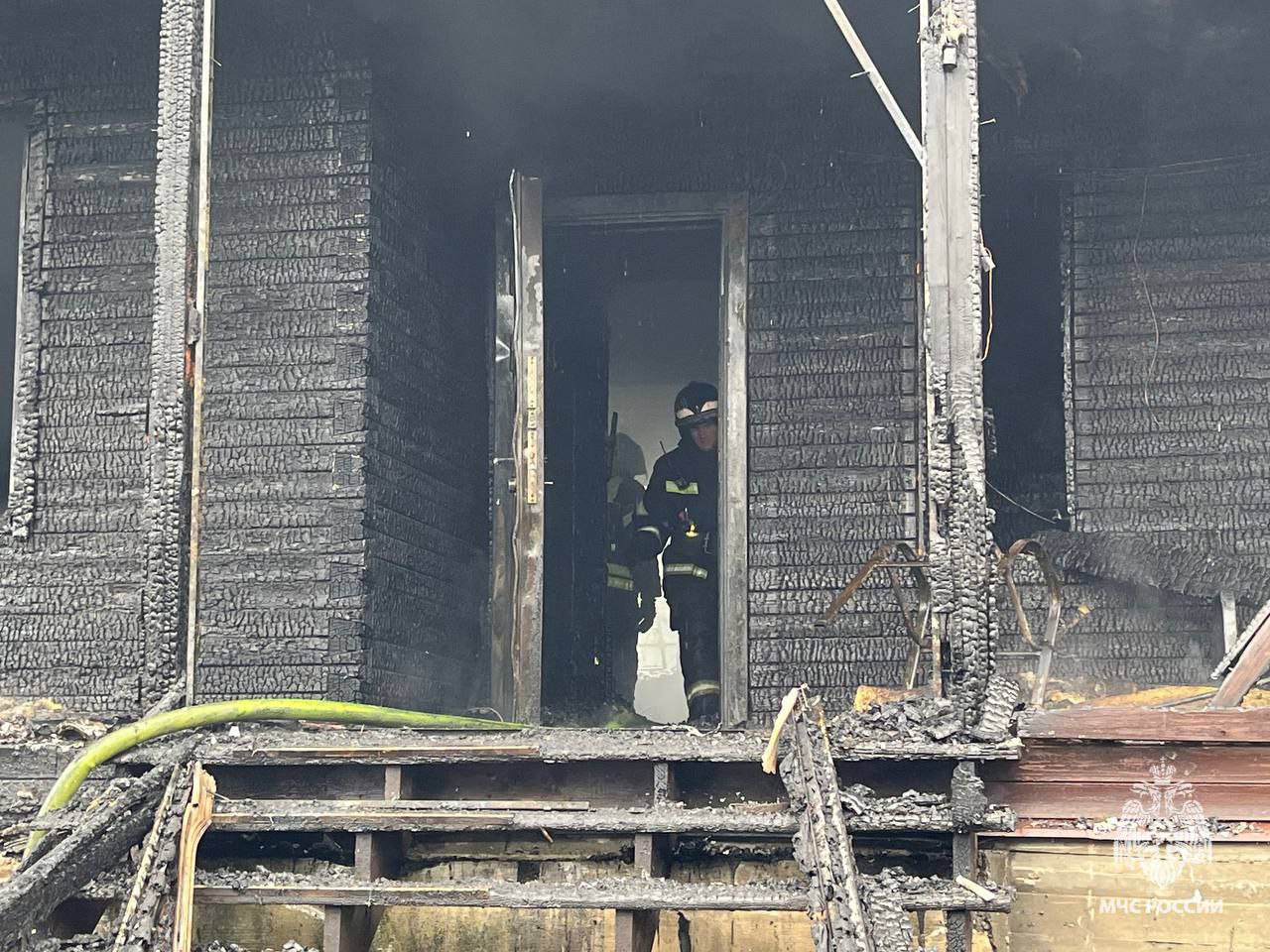 На кадрах, опубликованных спасателями, видно, что жилище внутри выгорело полностью.