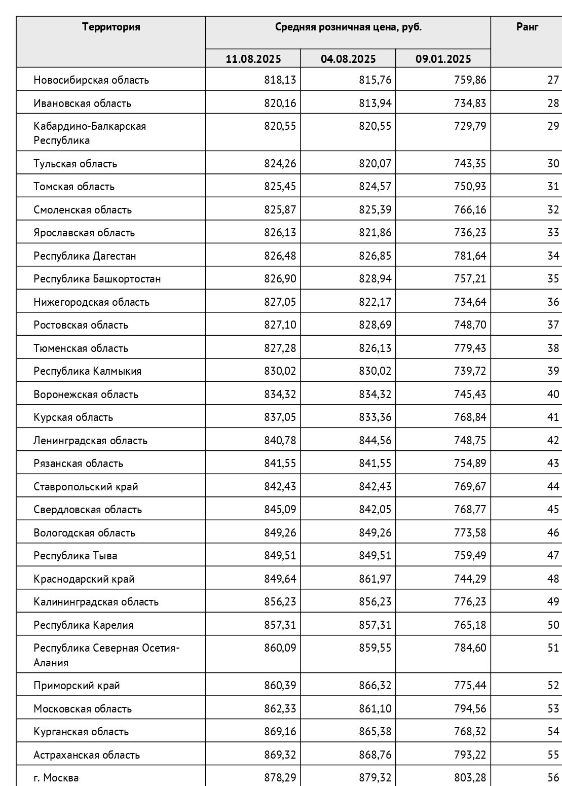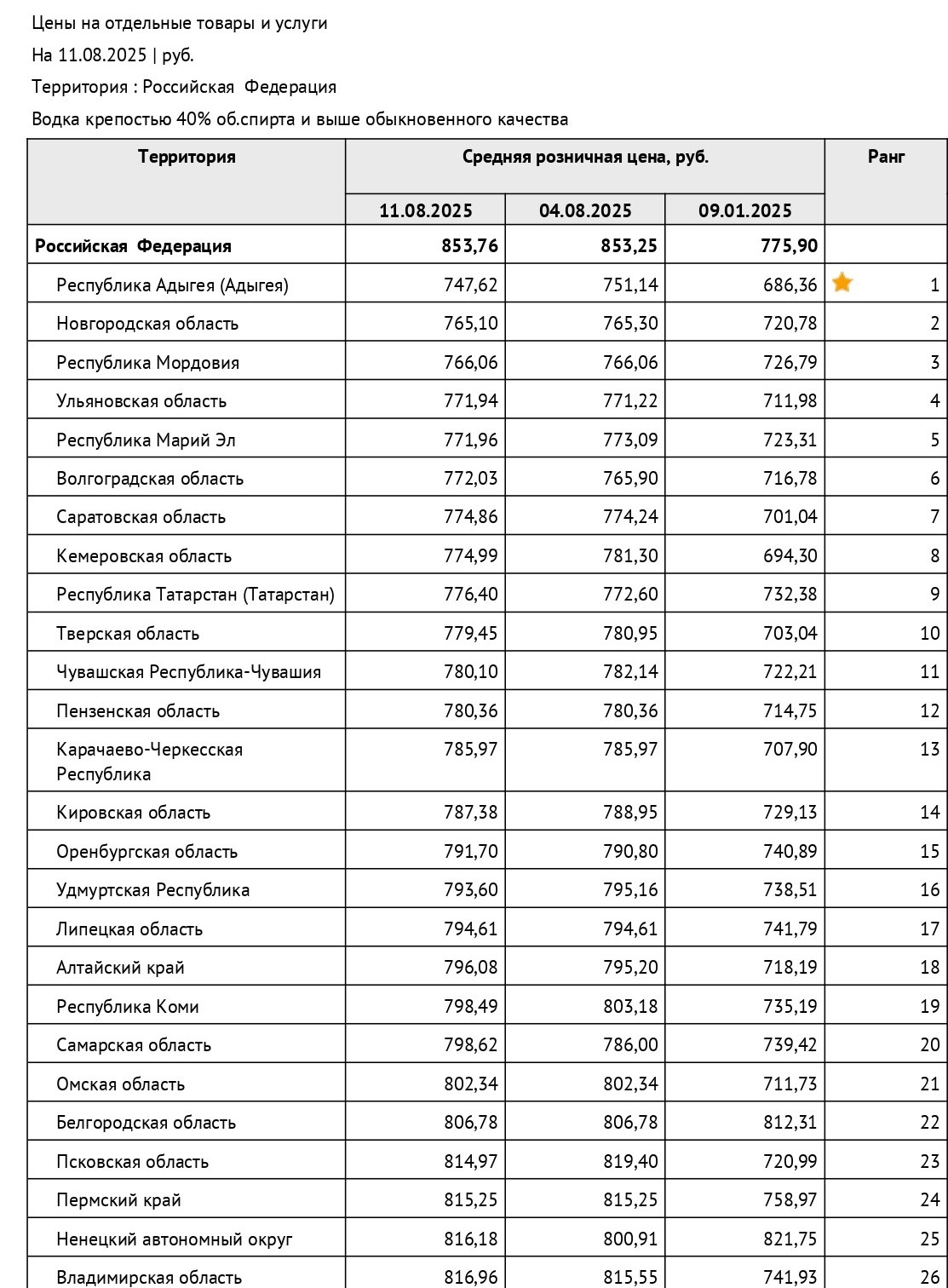 С января 2025 года водка в Тульской области подорожала на 11%. Данные приведены на сайте региональной системы в сфере закупок. В начале года литр крепкого алкогольного напитка стоил 743 рубля. По данным на середину августа стоимость выросла до 824 рублей.