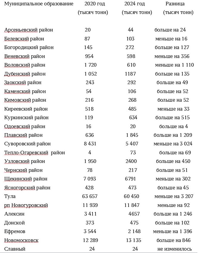 Наиболее увеличилось число выбросов в Алексине (1 246 тысяч тонн), Плавском районе (1 209), Новомосковск (846).