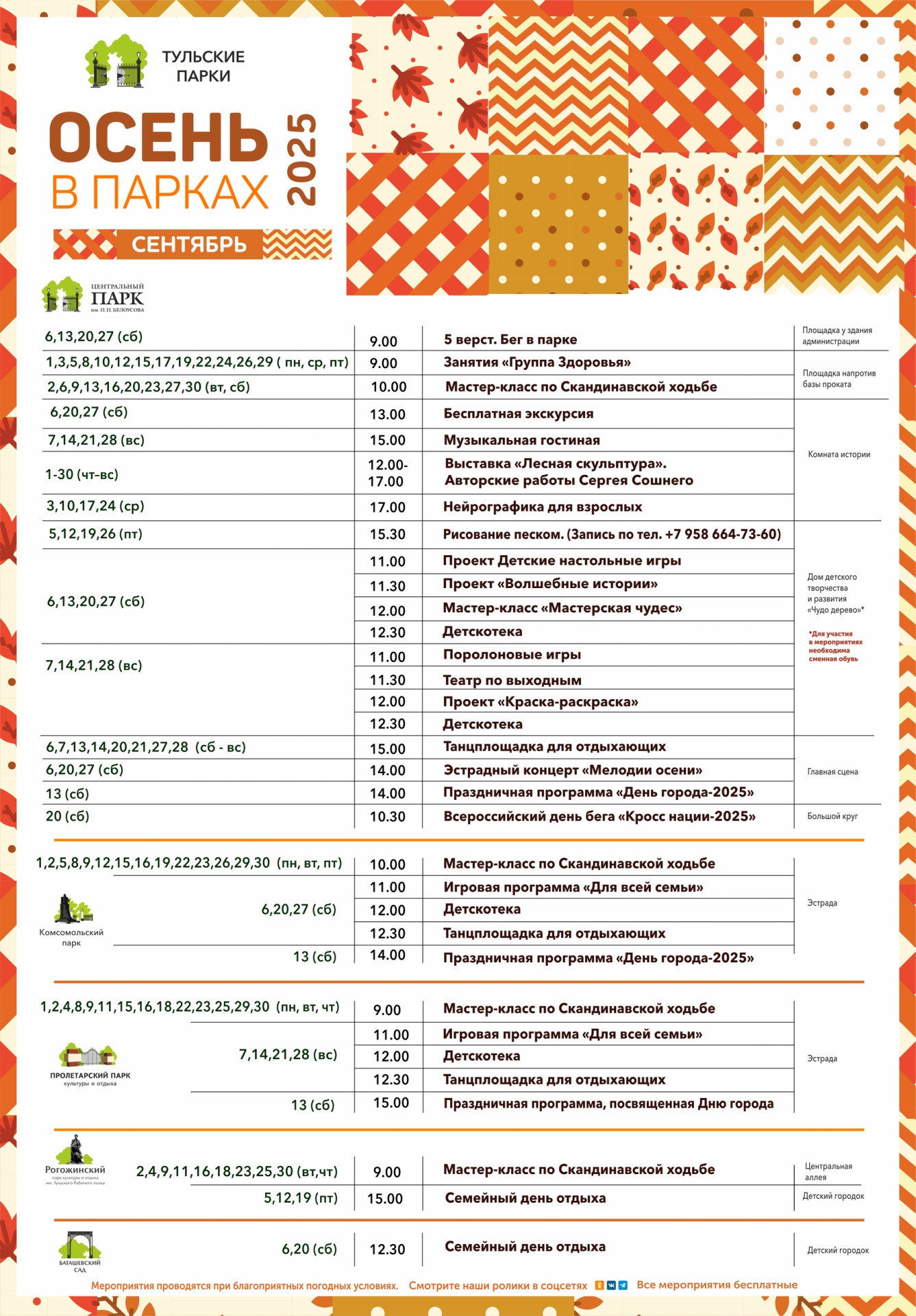 - 20 сентября 2025 года в литературном кафе «Стива» культурно-выставочного комплекса «Л. Н. Т.» состоится концерт автора-исполнителя Евгения Бобкова «Как много осени во всем...». 12+