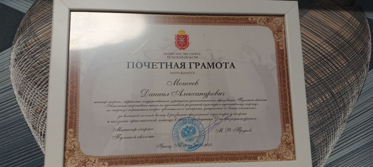 Глядя на спортсменов, далеко не все люди задумываются о том, какими титаническими усилиями им даются подобные результаты. Нередко молодые звёзды остаются незамеченными даже в родном городе. Так случилось и с параспортсменом Даниилом Моисеевым, мастером спорта по легкой атлетике. Мальчик с диагнозом «поражение опорно-двигательного аппарата» не просто является профи в своем деле, но и поставил рекорд России. Тульская служба новостей рассказывает удивительную историю спортсмена.