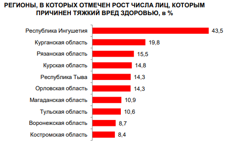 Упоминается Тульская область и в другом отрицательном показателе – рост числа лиц, которым причинен тяжкий вред здоровью.