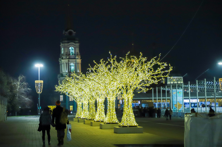 Изменилась концепция новогоднего освещения площади Ленина. Главным украшением города стала новая ель с рекордной для такой конструкции высотой 32 метра и мультимедийным шатром диаметром 60 метров. В ель и шатер встроена управляемая гирлянда с видеоэффектами. Конструкция включает в себя 300 тысяч диодов, длина гирлянд – 30 км. Это второй подобный объект в стране с учетом сложности конструктива и мультимедийного управления. Причем в Туле ель доработана в новой версии программного обеспечения и аппаратного комплекса.