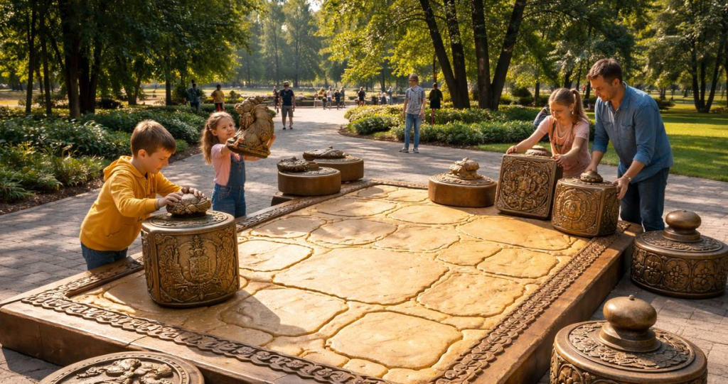 Представьте стальную линейку высотой с пятиэтажный дом, установленную вертикально. На ней – не сантиметры, а исторические вехи города: «XIV век – первое упоминание», «1712 – указ Петра I», «1941 – оборона Тулы». Это символ точности тульских мастеров – от оружейников до инженеров. По задумке нейросети, по ней даже можно было бы «измерять» уровень патриотизма, делая селфи на фоне той или иной даты. Такой экспонат предлагается установить перед Тульским кремлём или в сквере у Демидовского музея.